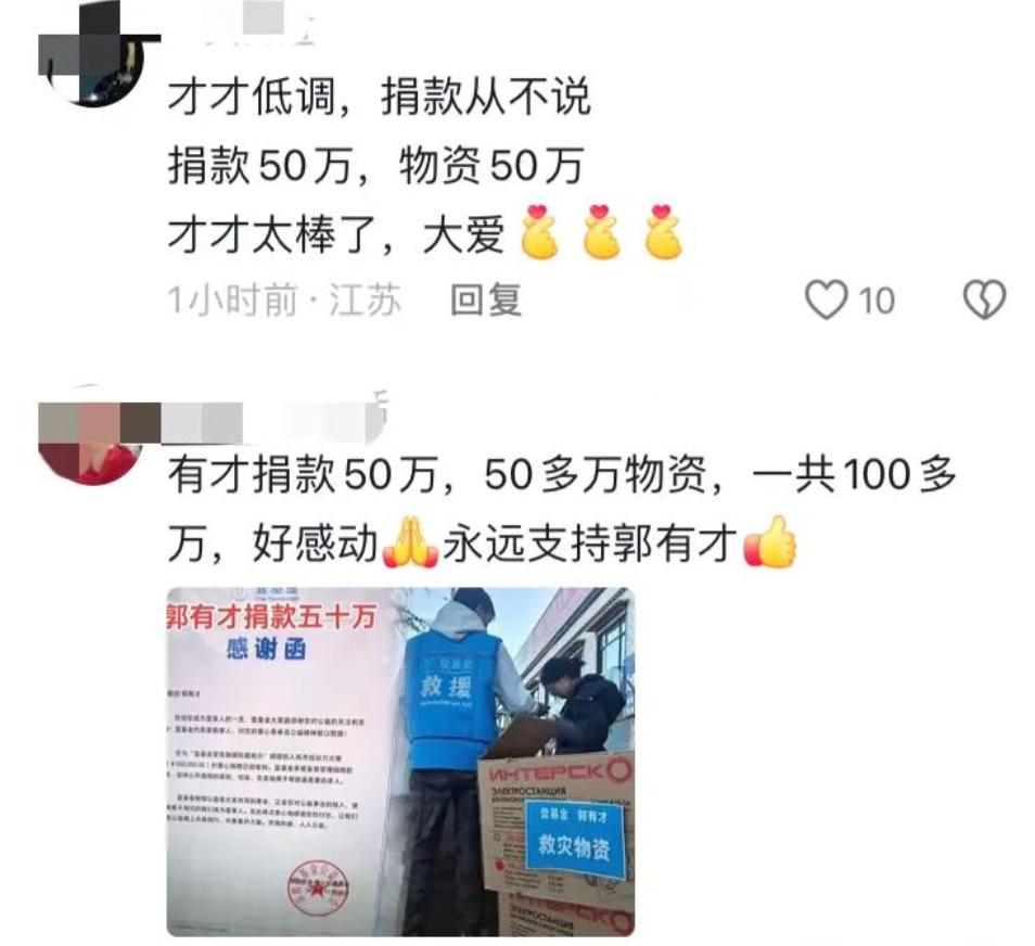 前不久,日喀则发生地震,郭有才也“挺身而出”。
