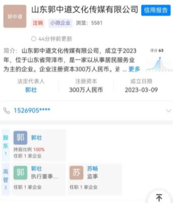早在2023年,郭有才就曾以300万资本注册了一个传媒公司。