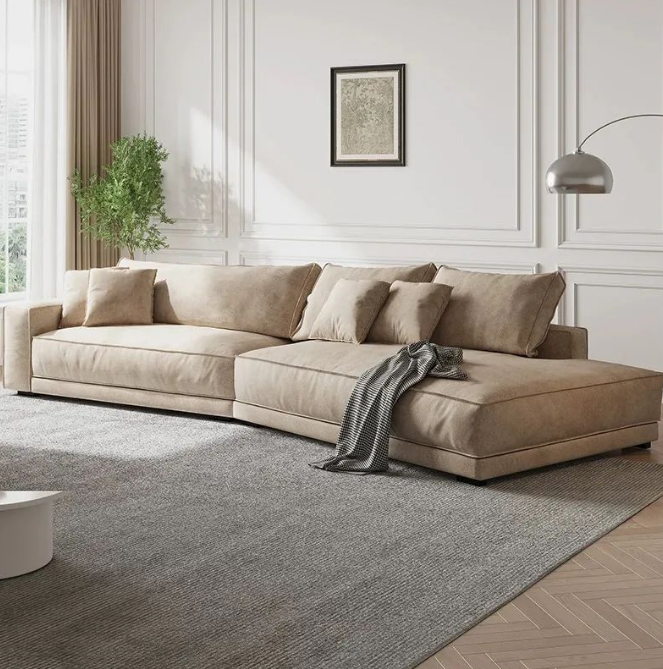 84厘米的宽敞坐深和140厘米转角贵妃位,让您坐躺随心。高品质白鹅绒与45D高密度高回弹海绵的组合,不仅提供了柔软的触感,更具备良好的支撑力,自然贴合身体倾斜的弧度,为您定制自由的休息空间。