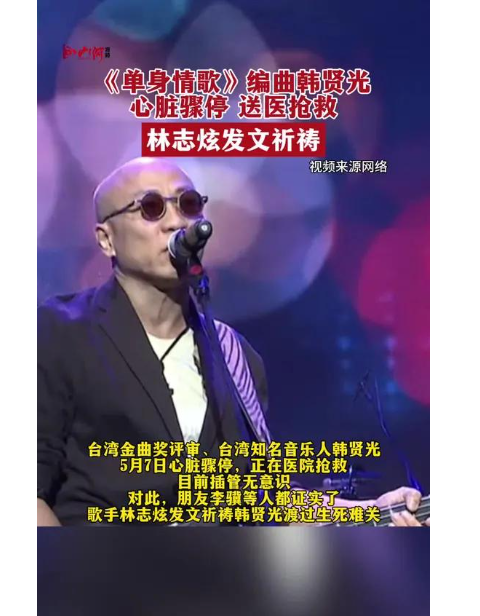 华语乐坛传来悲痛消息,台湾著名音乐制作人、作曲家韩贤光先生因突发心源性猝死,经多日抢救无效,于今日凌晨3时54分在上海逝世,享年67岁。这位曾创作《单身情歌》《离人》等经典金曲的音乐大师,其离世令整个华语音乐界陷入哀思。