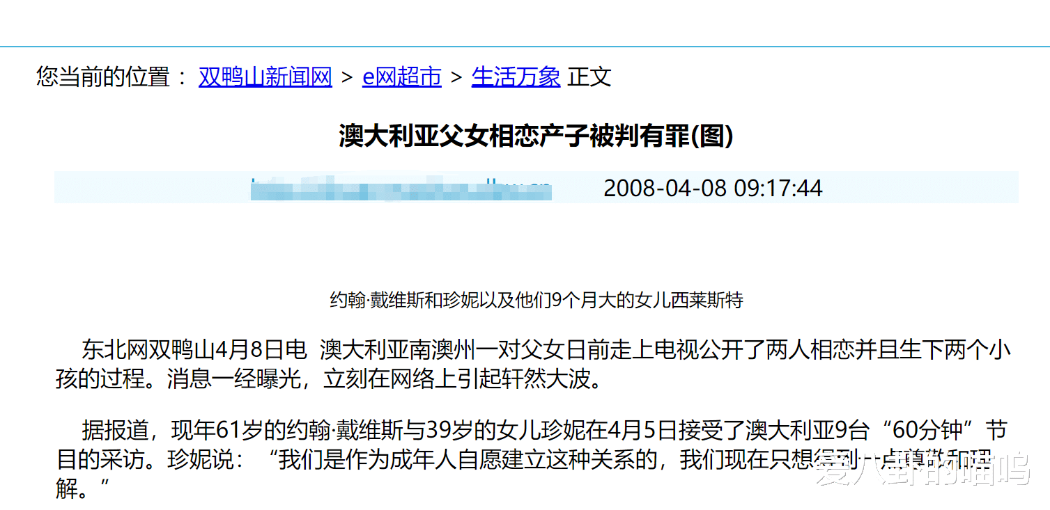 2008年3月,一对澳大利亚父女在电视台,在《60分钟》的栏目中,公开了两人相恋,并且生下两个孩子的过程,然后引发了一场热议。