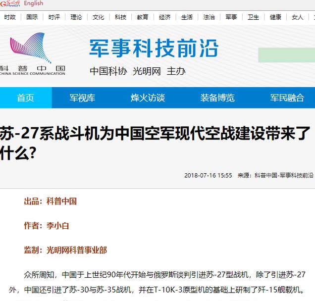 环球网所发布《俄媒曝光中国苏27及苏30战机国产化过程细节》