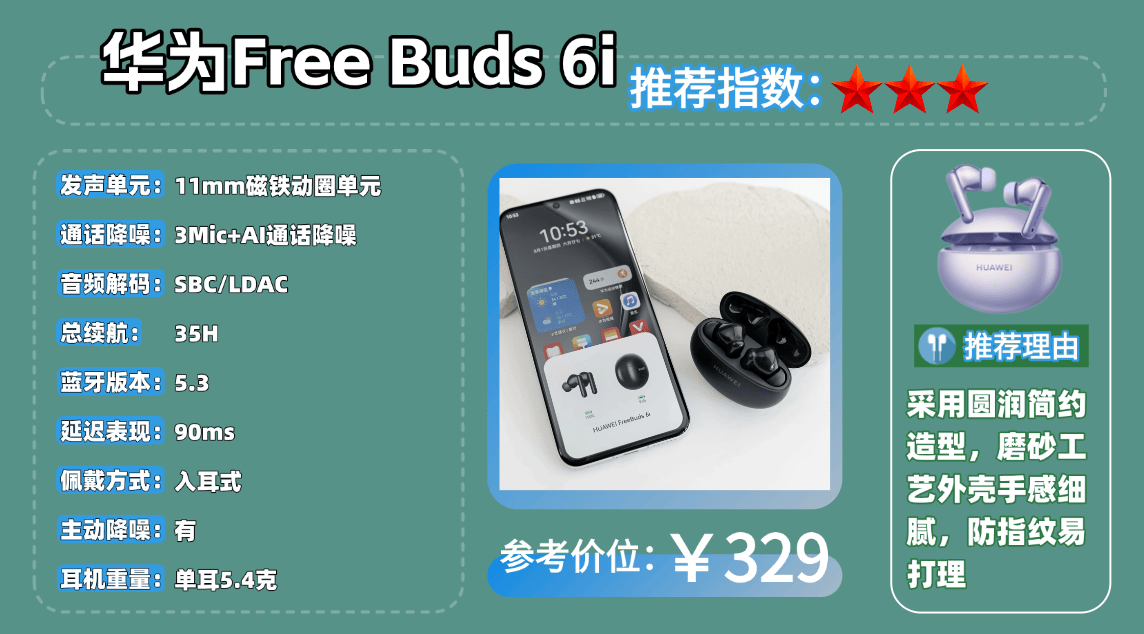 综合主流爆款2:华为Free Buds 6i蓝牙耳机