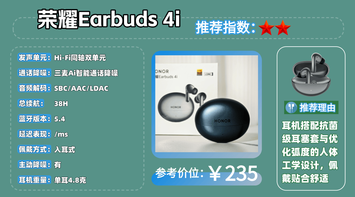 综合主流爆款7:荣耀Earbuds 4i 蓝牙耳机