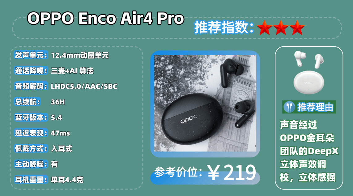 综合主流爆款9:O PPO E nco Air4 Pro蓝牙耳机