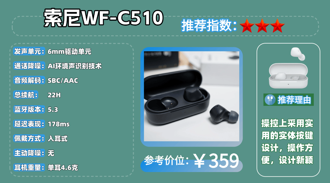 综合主流爆款5:索尼WF-C510蓝牙耳机