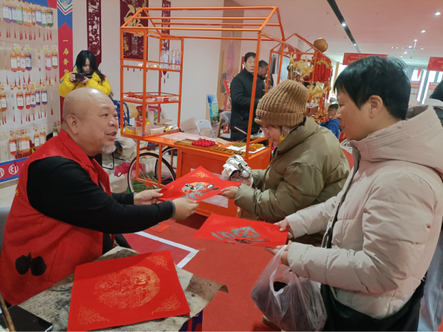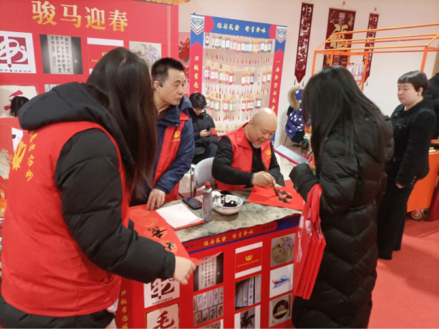 公益活动区内,书画分会在弓晓钟会长带领下,书法家徐滨老师铺纸研墨、现场挥毫,一幅幅寓意吉祥的春联和福字跃然纸上。史威武会长助理全程协助,帮着递纸、整理成品,还为行动不便的老人贴心送春联。此次活动共为现场老人送出三十余幅手写春联,墨香里满是新春暖意,老人们捧着定制春联,纷纷为志愿者的暖心服务点赞。