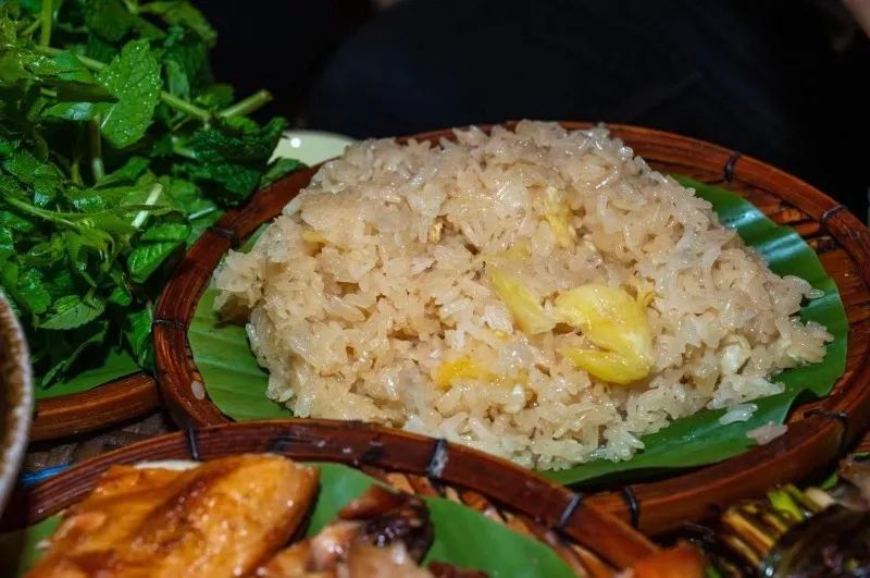 ③南糯山庄:勐海县南糯山,紫糯米菠萝饭,酸香酸甜菠萝邂逅香醇紫米,软糯裹着甜蜜,果香满溢,一口接一口,根本停不下来。