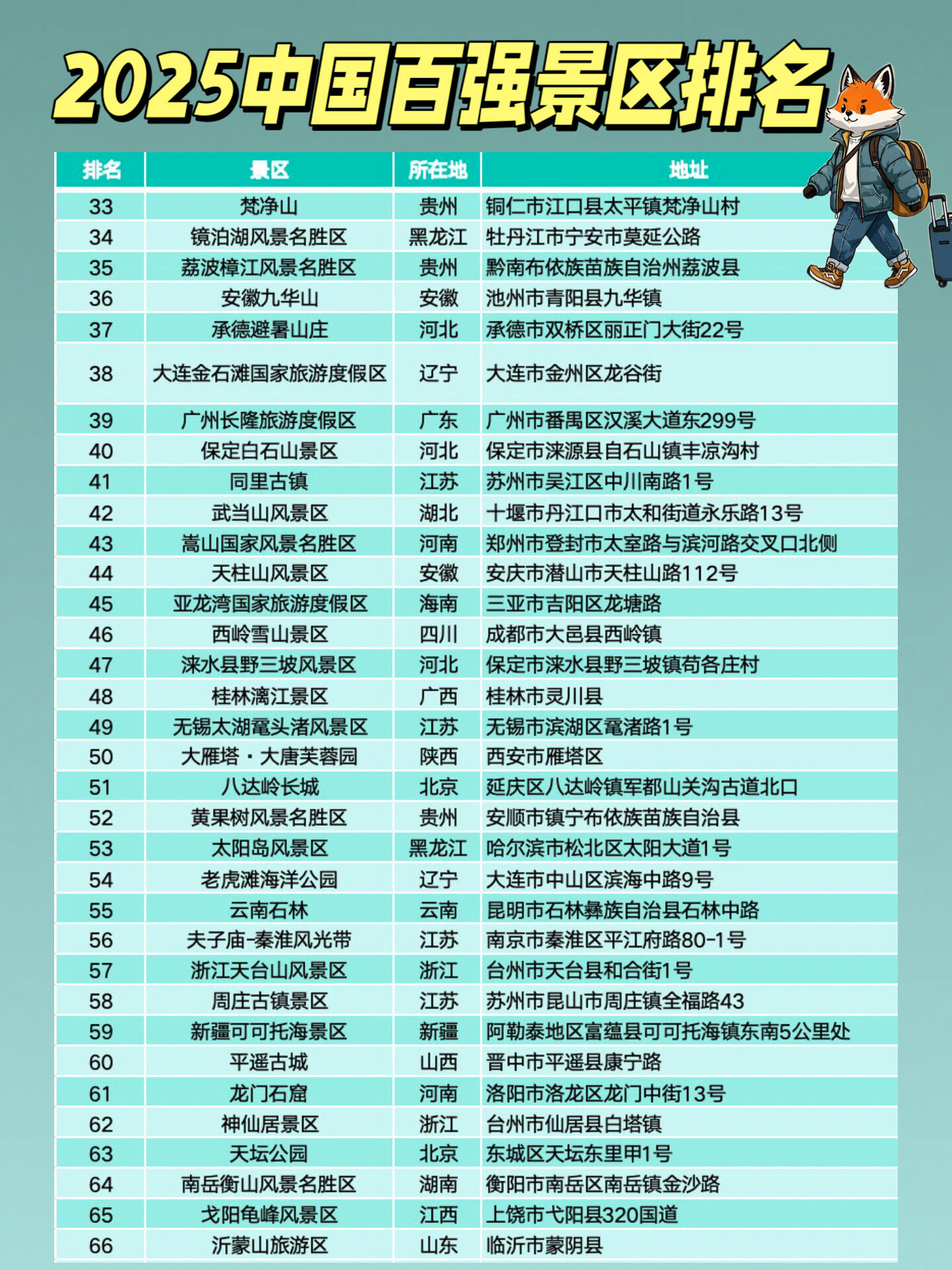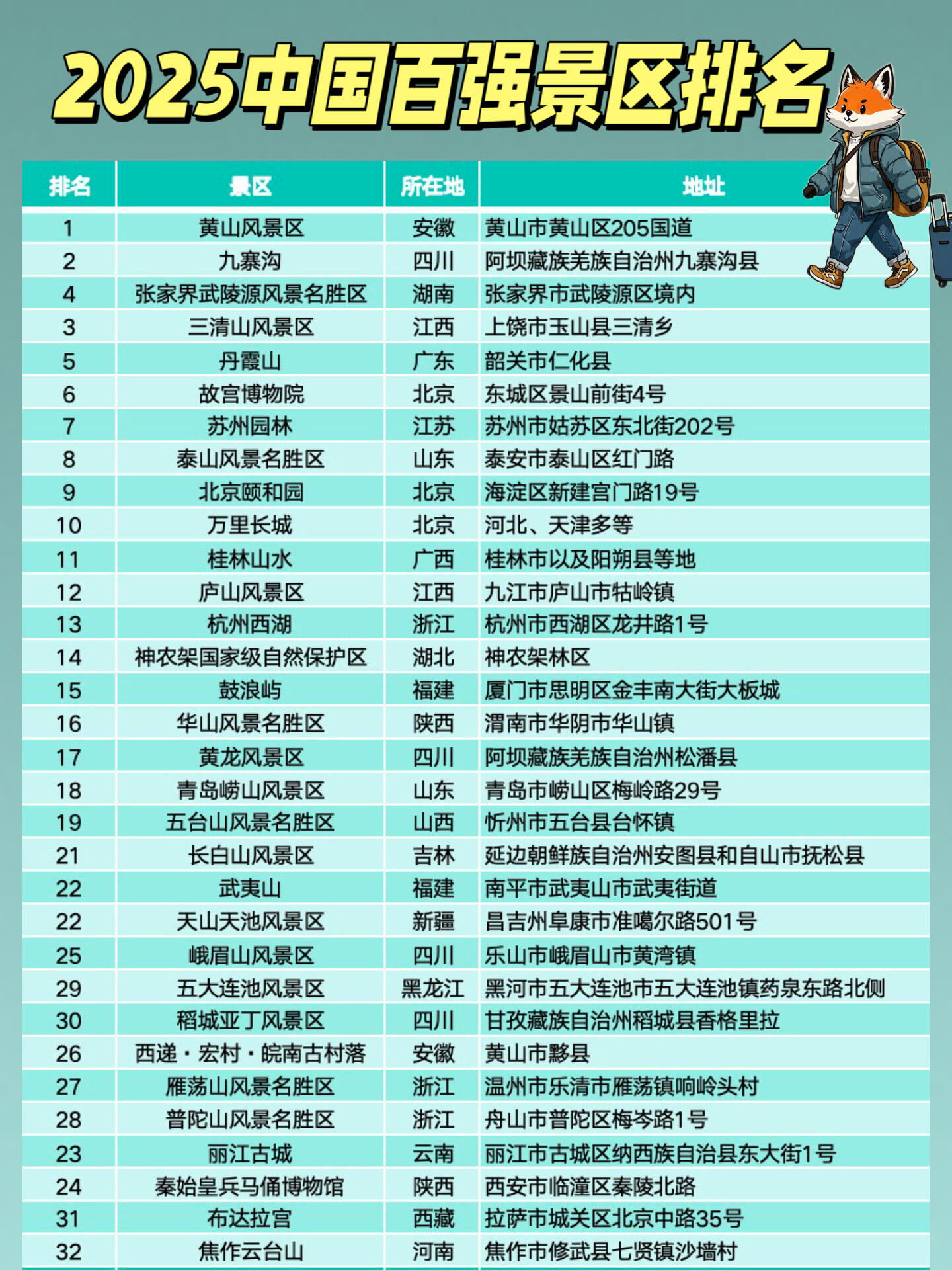 这一份2025中国景区Top100榜单,是一场视觉与心灵的盛宴,每一个景区都有其独特的魅力,等待着人们去探索、去发现,无论你是钟情于自然景观,还是偏爱人文古迹,都能在其中找到属于自己的诗与远方。