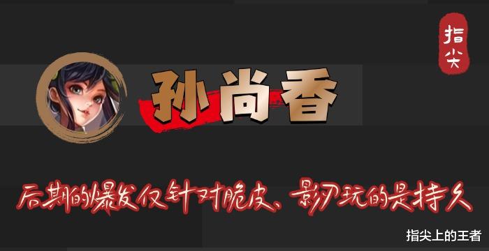 很多人将孙尚香当成了后期大哥,事实上后期的孙尚香并不是很好输出,除非那种大顺风,否则僵持局,不是很好打。