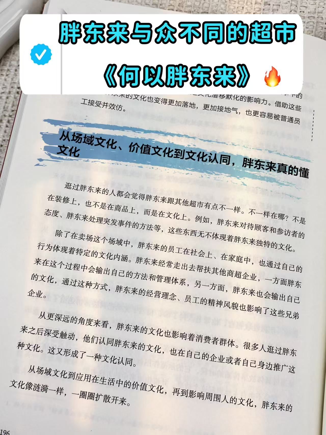 进过胖东来的人都会觉得胖东来跟其他超市有点不一样。不一样在哪?不是在装修上、也不是在商品上,而是在文化上。例如,胖东来对待顾客和参访者的态度、胖东来处理突发事件的方法等,这些东西无不体现着胖东来独特的文化