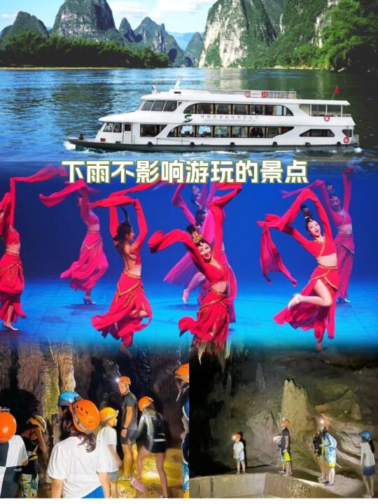 🚢漓江游船:暴雨天也能玩!窝在船舱看水墨画,小雨冲甲板拍20元背景