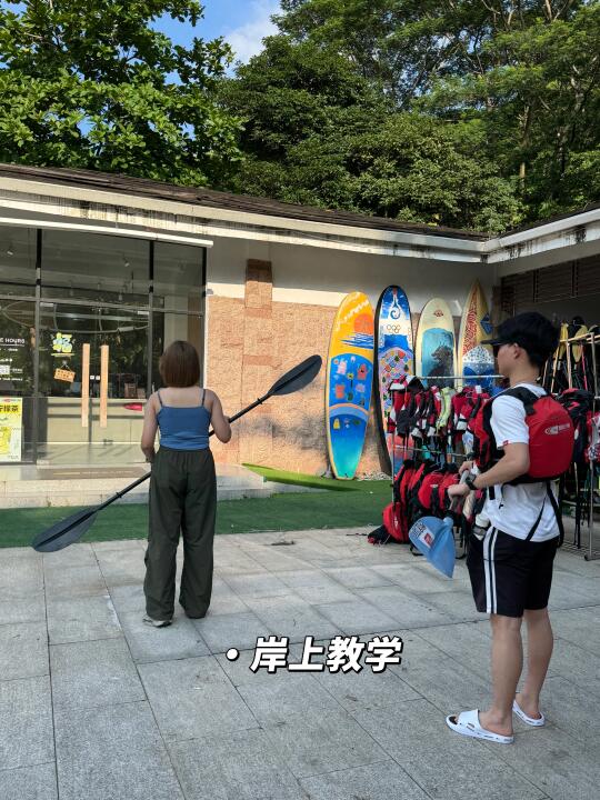 2️⃣岸上教学:教练会1对1教学,教桨如何握、前进、后退、左转、右转和刹车怎么操作,很有耐心,很清晰,很快就能学会,零基础也能学会
