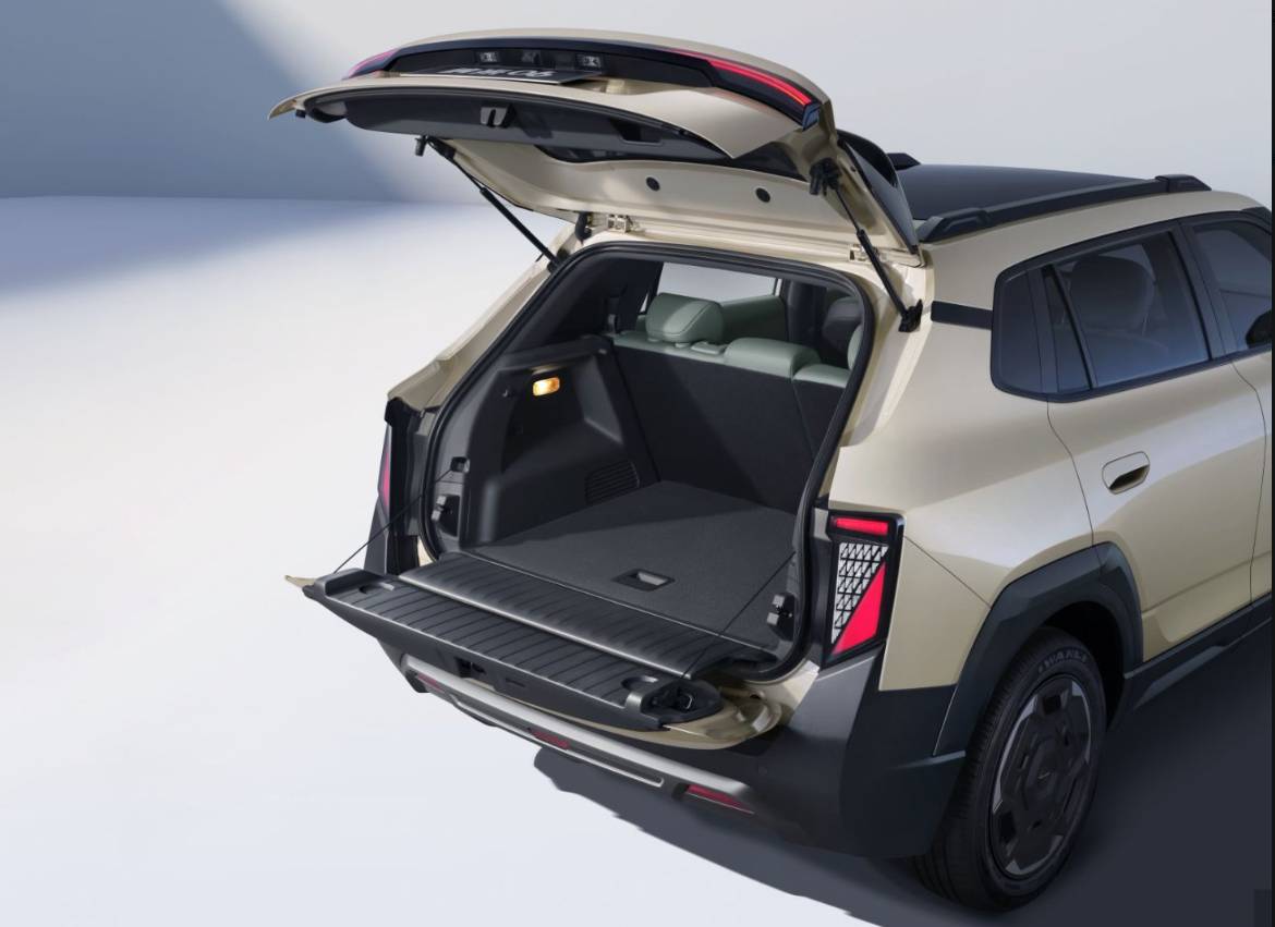 一是所谓的“能装”,其轴距达2715mm,车宽1868mm,对车内空间进行了极致利用,得房率为85%。其有同级独有的天地门设计,地门能变身440mm×950mm的桌板,还能承载150kg重量,实用性拉满。加上500L的超大后备厢(含盖板下方 72L 隐藏空间),后排座椅放倒后最大可拓展至1040L,能满足不同场景需求;全车还有35处储物空间,让小物件各归其位。看得出来,其空间设计、布局是花了不少心思的。