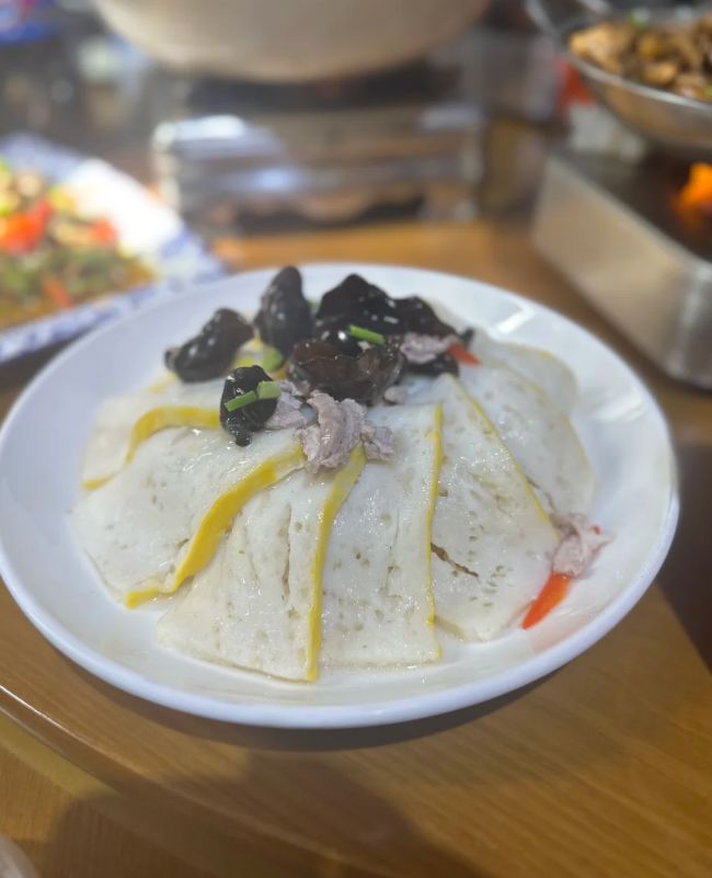 荆州鱼糕的吃法多样,可煮、可蒸、可烩、可烫火锅。最常见的是“杂烩头子”,将鱼糕片与肉圆、木耳、笋片等一同烩制,汤汁鲜美,鱼糕在其中吸饱了汤汁的精华,愈发嫩滑鲜美。也可以切片直接清蒸,食用时蘸一点香醋,更能突出鱼糕本身纯净的鲜甜与细腻无比的口感。那是一种极致的“软”与“弹”的结合,入口即化,却又在舌尖留下清晰的、鱼肉特有的鲜味,毫无腥气,只有满口的温润。
