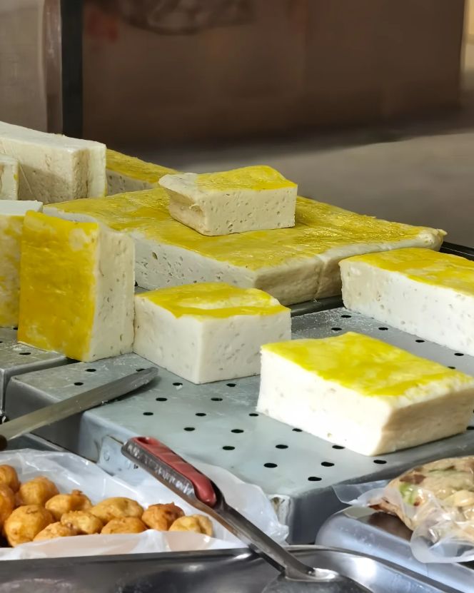接下来是塑形与蒸制。将打好的鱼茸倒入铺有湿纱布的蒸笼中,抹平表面,有时还会在表层均匀地涂抹上一层鲜亮的蛋黄液。上锅用旺火蒸熟。蒸好的鱼糕,通体雪白,唯表层金黄,状若金砖白玉。冷却后,质地变得紧实而富有弹性,可以切成整齐的片状。