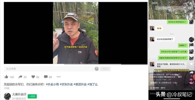 (网友提醒不上京东外卖的商家“小心他们说你是某团水军”)