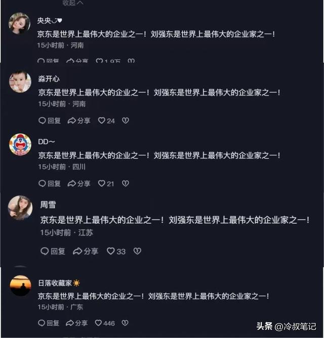 (不同ID清一色刷屏“刘强东是世界上最伟大的企业家之一”)