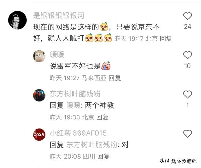 最后,饭圈的强控评和高密度信息攻击,必然影响京东的路人缘。