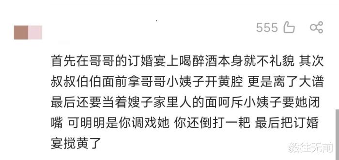 而且,最让网友觉得膈应的是,明明亲家的妹妹就在不远处坐着,在座的这些男方的叔叔伯伯没有一个人制止这种行为,反而一起取乐,这是一大家子什么人啊?