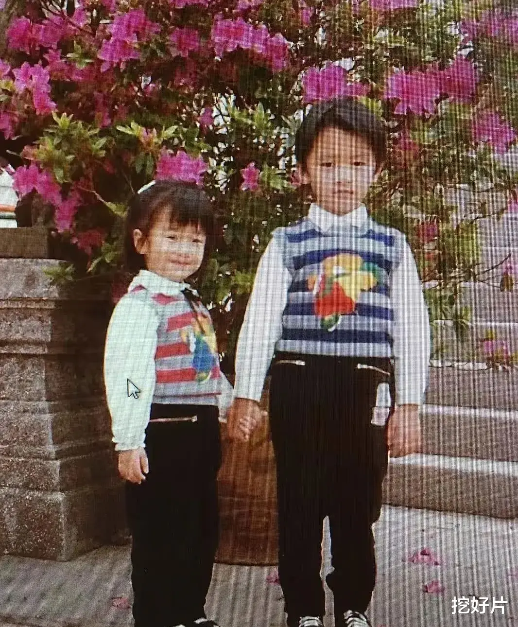 妹妹谢婷婷没有到场,但是却晒出兄妹童年牵手照给哥哥助阵,小时候的谢霆锋和现在有点差别。