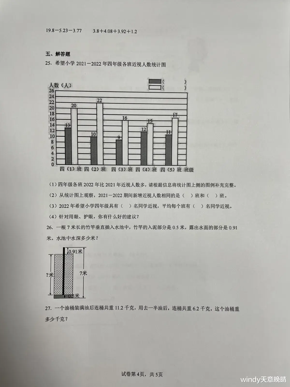 █ 小数加减法(8分) | █ 三角形分类(5分) | █ 平均数(3分)