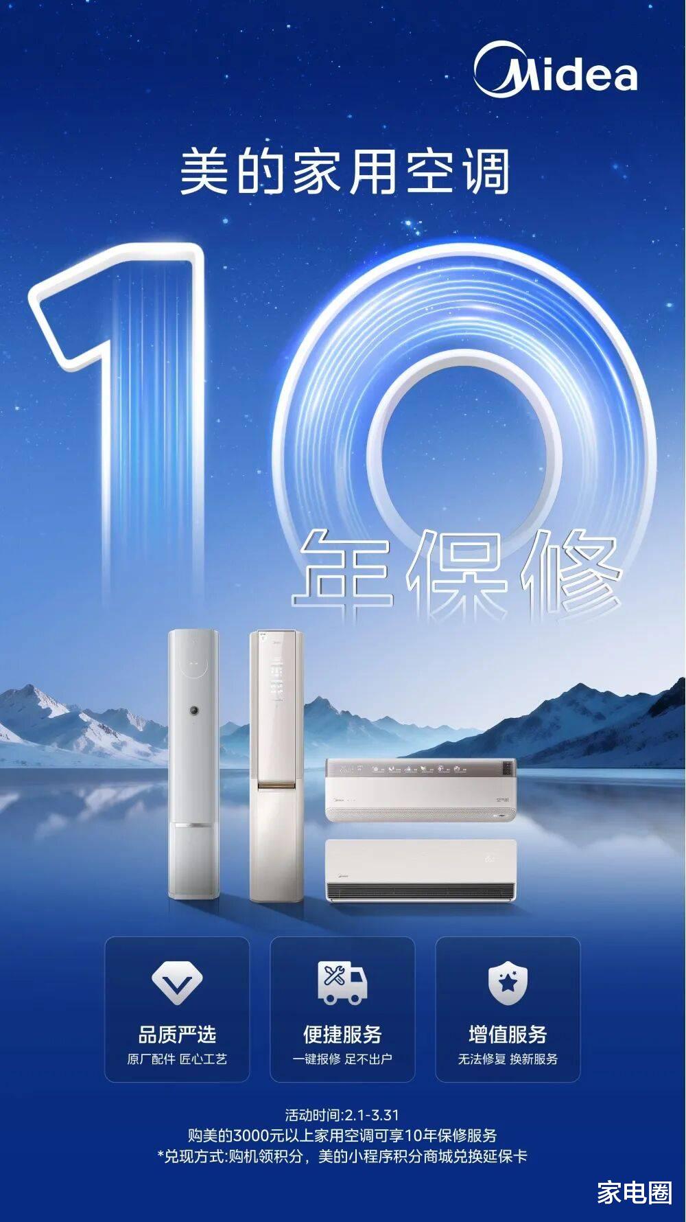 此外,凡购3000元以上家用空调,即可享受10年整机全免费保修,覆盖核心部件与全流程服务,美的此举相当于为空调提供长期保障,彻底解决用户售后顾虑,把质量安心写进承诺里。