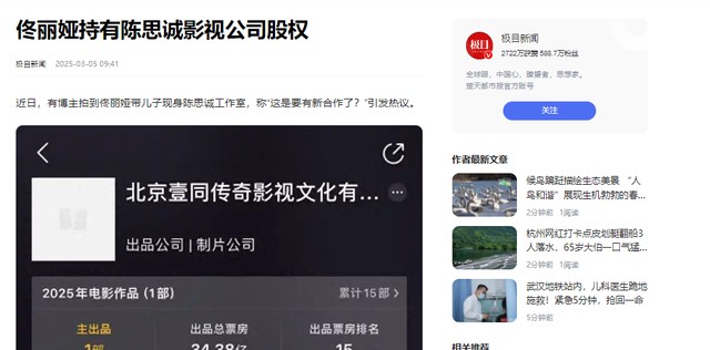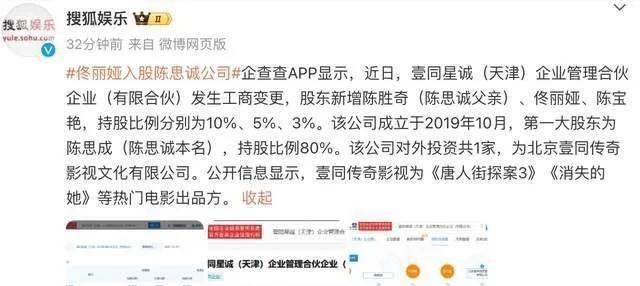 2023年,佟丽娅入股了陈思诚的壹同星诚公司,