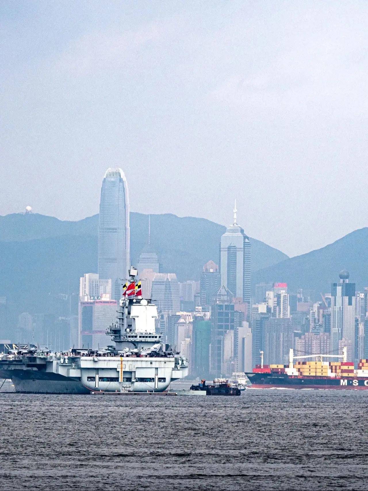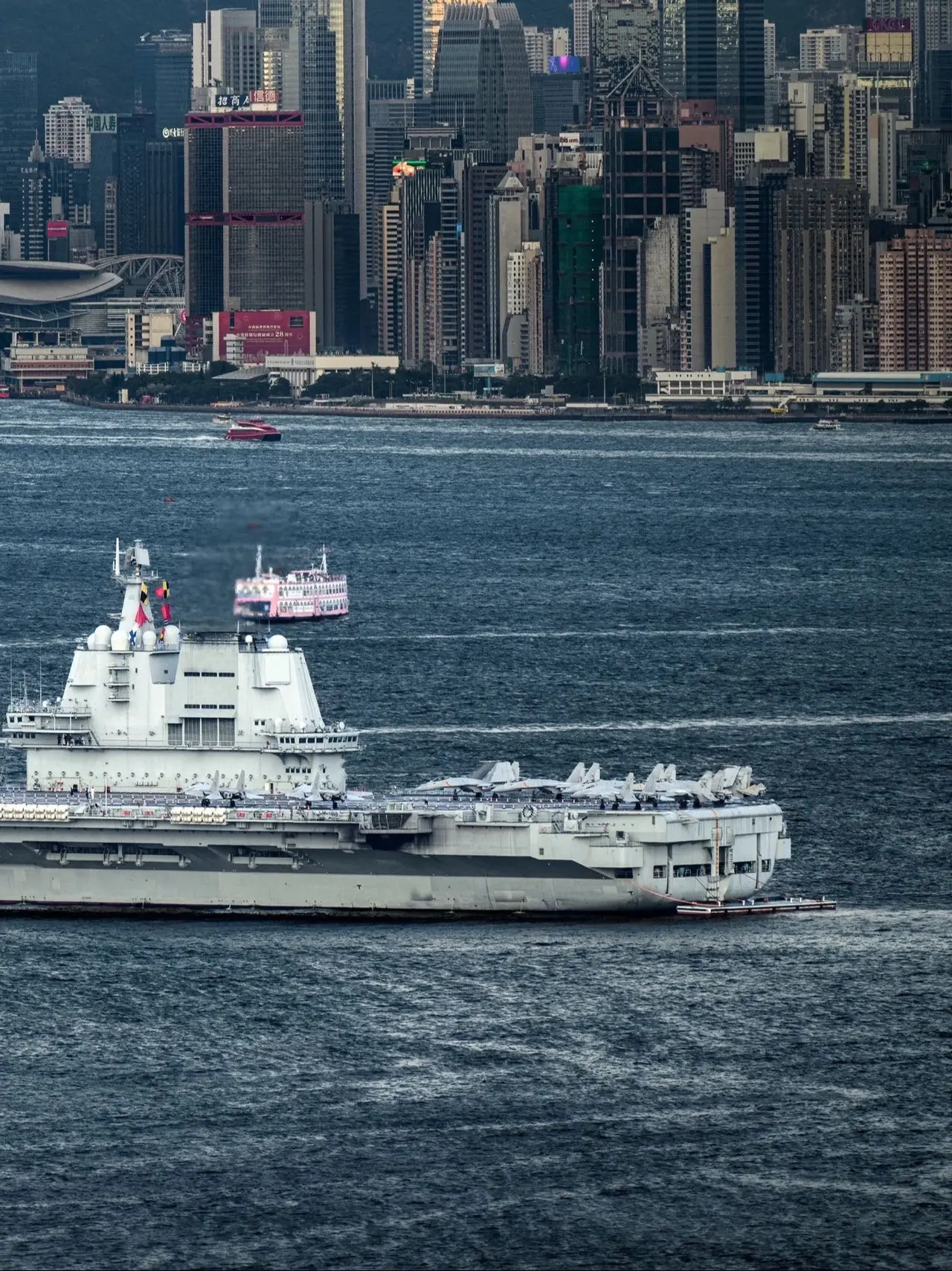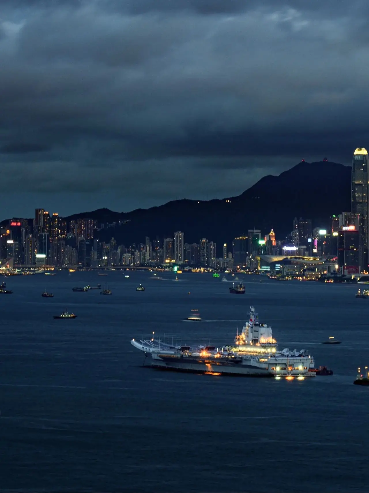 山东舰在维多利亚港的日与夜 当山东舰遇上维多利亚港,“鲁渔17”的灯光...