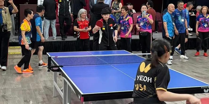 美国乒协:2025年7月13日,中美乒乓球运动员与当地爱好者齐聚拉斯维加斯的内华达州美中文化协会中心,共同纪念“乒乓外交”54周年。