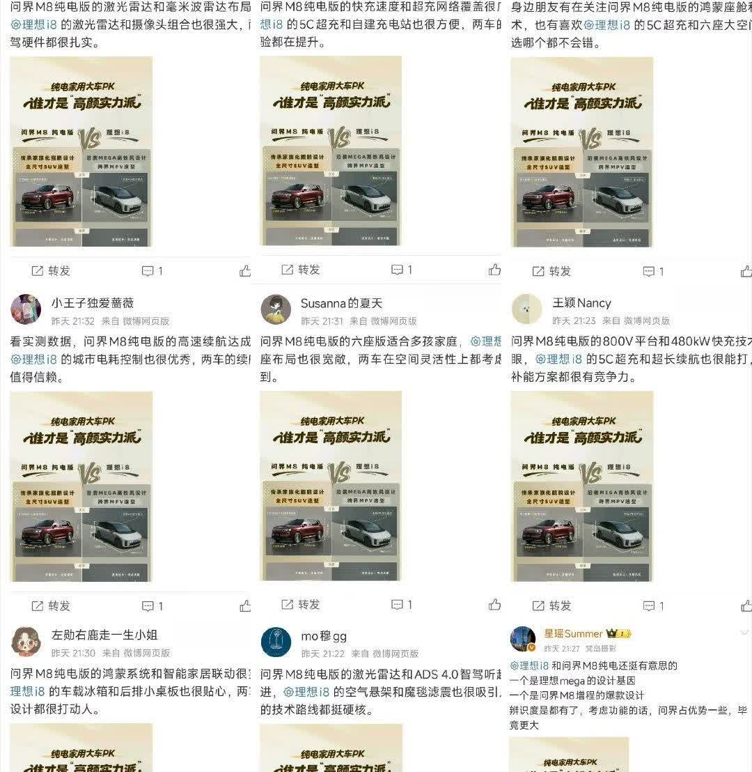 问界M8纯电对比理想i8,这才是饱和式攻击 理想现在最大的对手其实还是问界 毕竟基本盘是增程 现在问界M9、M8太猛了 马上新一代M7也要来了 而理想的纯电i8马上要面对问界M8纯电 而且华为是真的搞饱和式攻击营销的【来自懂车帝车友圈】