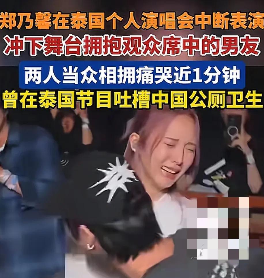 在中国出道回泰国后说中国厕所很脏很恶心的郑乃馨又有骚操作了!她在演唱会上唱歌,唱着唱着就跑到台下,扑进男友怀里大哭了起来,俩人搂搂抱抱的腻歪了好一会儿才分开,直接把现场的观众们看呆了。 就算现场的观众都是郑乃馨的粉丝,也受不了她如此做派,觉得郑乃馨太没职业素养了,大家付钱来是看她唱歌的,不是看她和男朋友秀恩爱的。 想要秀恩爱回家秀不可以吗?唱完歌秀不可以吗?为什么非要唱到一半秀恩爱啊?而且哭的那么委屈,难道让她给粉丝们唱歌是一件很委屈的事情吗?她没有赚粉丝钱吗? 真的越来越不理解郑乃馨的脑回路了,明明她在中国的时候,走的还是甜美可爱风,怎么回了泰国就变了一个人似的,各种奇葩言论和奇葩行为层出不穷,两边粉丝都得罪光了,还能在娱乐圈混吗?