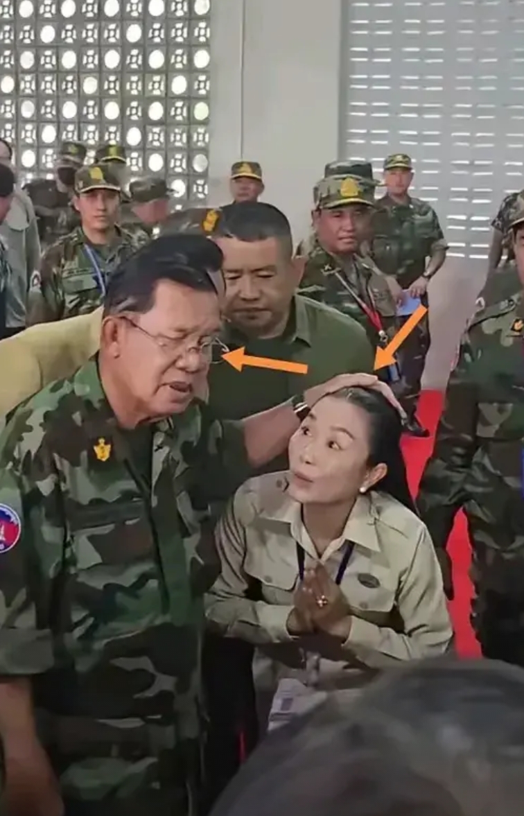 洪森视察部队时对汇报工作的漂亮女下属的这行为引起网友热议。掌控柬埔寨40年的洪森作为一国领导人,应该有领导人的威严和样子。只见洪森用左手盖在在女下属的头上,用还算正常的左眼斜视女下属听取汇报,吓得女下属半蹲着跟洪森汇报,看着女下属的面部表情确实有点被吓到的感觉。这可有失一国领导人面对国民慈祥的一面。 洪森这么威严气质,我不相信柬埔寨的电信诈骗分子会泛滥,除非有人后面默默的支持。