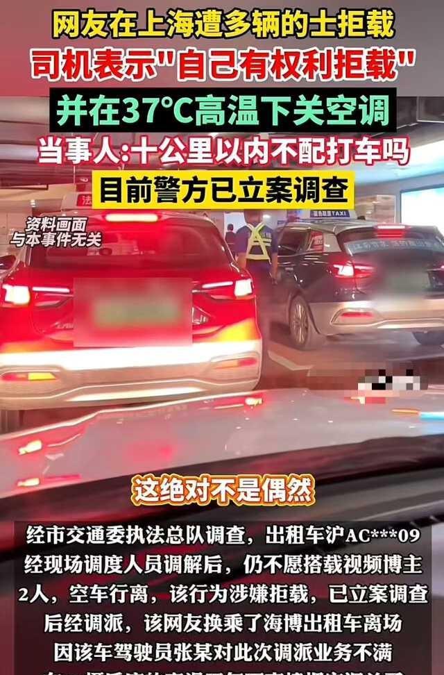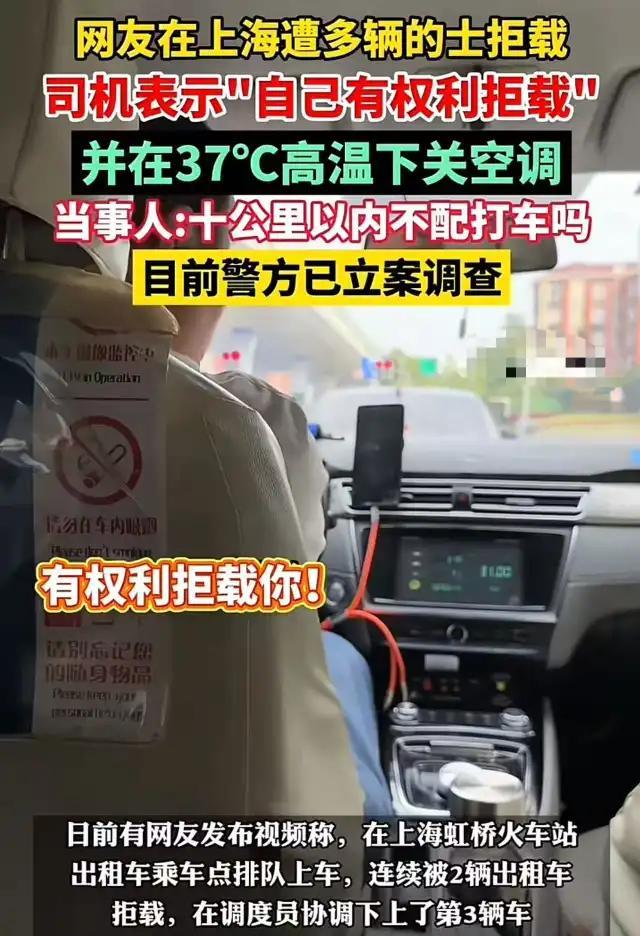 上海,虹桥交通枢纽2号出租车站,一位女士拎着行李排队准备打车回闵行区,车程不足10公里。结果这位女士连着被两辆出租车拒载,原因是车程太短。之后女士上了第三辆出租车,却被第三辆车的司机骂了一路。目前交通执法总队已经介入该事件,后续会立案调查。 据悉,这位女士正拎着行李准备排队打车回闵行区。 好不容易排到这位女士了,她刚把自己的行李都放到后备箱,坐上车想休息一下,就被师傅告知因为车程太短不足十公里而拒载。这位女士只能无奈下车,又从后备箱取下自己的行李。 虽然有点无奈,但女士觉得这应该也是少数现象。随后就等待上第二辆出租车。但令人没想到的是,第二辆车的司机在询问了女士目的地后,也直接摇手拒载。 赶了一宿路,女士已经舟车劳顿,也懒得和这些司机吵架,只想快点回酒店休息。 终于,第三辆出租车司机让女士上了车。这位女士本想着终于可以好好休息了,没想到这一路司机的嘴就没停过,还把空调关了。 司机不停的抱怨这位女士, 比如“都怪你们才这么堵车”,“人家都不拉你因为觉得距离太近,我真倒霉拉上你了”,“你们自己导航吧,走错了不怪我”。 @芹姐说法 随后女士也没有多和司机争辩,直接打开了手机录像留证据,并且在下车后拨打了交通执法热线。 目前上海市交通执法总队已对相关车辆和驾驶员立案调查,并且暂扣了涉事司机的从业资格证,事件还在持续调查中。 第二,根据《消费者权益保护法》第23条,经营者提供服务应当公平诚信,不得无故拒绝。 该事件中的女士作为消费者享有公平交易权,前两位司机无正当理由拒载已侵害其合法权益。若因此误点或产生额外费用,这位女士可要求运营公司赔偿。 第三,《上海市出租汽车管理条例》第38条规定,驾驶员应文明服务、不得辱骂、嘲讽乘客。 在该事件中,第三位司机虽然载了乘客,但一直在说“都怪你们才这么堵车”,“你们自己导航, 我不导航, 走错了别怪我”, 以及在37度的天气下故意关闭空调,这已经严重违反了该条规定。 乘客完全可以投诉司机,交通执法部门会依法处置50–200元罚款,并记5–10分。不仅如此,如果被认定为服务违规,可罚司机200–2000元,记20分。情节严重可吊销从业资格。 信源:红星新闻2025-7-18
