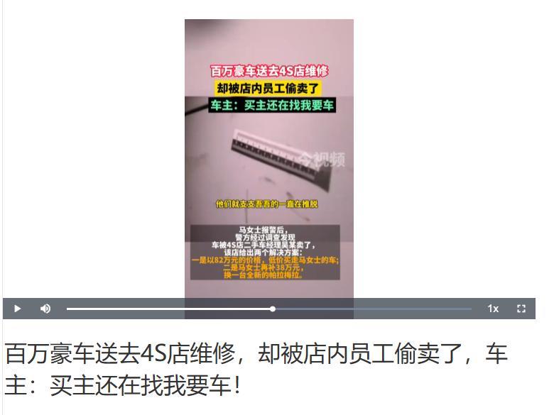 内蒙古女子将100万保时捷卡宴送到4S店维修时,竟被4S店员工私自卖给了二手贩子。4S店称:你再补交38万,给你换辆新的帕拉梅拉。法院该如何判? “你们是4S店还是土匪窝?” 2023年6月,马女士为了生意需要,在当地保时捷4S全款买了一辆价值100万的卡宴汽车。 作为全球知名品牌,爱车给她赚足了脸面,走到哪都回头率爆表。 但仅仅过了5个月,车子就开始出现各种小毛病,先是发动机有异常,然后装饰板又松了,气的马女士找到4S讨要说法。 工作人员表示,车子还处于质保期,放在这里,他们会有专人负责维修、保养,让马女士放一万个心。 转眼几个月过去了,因为没有车女人做生意都不方便。 这天,她来到4S先看一眼维修进度,可左找右找,却看不到自己的卡宴。 “我的车呢?你们给我弄哪去了?”见工作人员迟迟不开口,马女士直接找来了民警。 得知这东西价值百万,帽子叔叔调取了4S店的监控,无果后又挨个询问。 事已至此,店内的二手车经理终于扛不住了,他道出实情:车子被处理了,赚的钱揣他兜了。 而且,该经理还理直气壮的表示:“那车停在这里好几个月,我以为没人要了,就捡个漏。” 100万的卡宴没人要?你骗鬼呢?对于4S的解释,马女士气愤不已。 当初选择这个品牌,就是因为它是百年车企,各方面够专业,可谁想却遇到了这样荒唐的经理! 很快这件事在当地传的沸沸扬扬,为了消除影响,4S店负责人给出了一个解决办法,如果马女士不想要车了,那愿意支付她82万,这事就这么算了。 若是她还想开卡宴,他们愿意卖她一辆新的,但女人需要额外再补38万元。 “你们把我当傻子耍?”女人一口回绝了,眼下她对于这个品牌彻底死心了,只有一个想法,全额退回自己的100万,否则就去法庭告4S店,让法官来处理。 对于这件事,网友给出了不同看法。 自己的员工监守自盗,还让车主倒贴38万换车?这数学是体育老师教的吧?合着车主修个车,还得给店里的‘内鬼’擦屁股?必须赔100万,员工直接进去踩缝纫机! 还有人调侃,建议4S店推出新业务:‘维修即置换,惊喜折上折’!车主送来一辆卡宴,收获一个‘补钱换新车’的盲盒,万一抽到帕拉梅拉,恭喜你,血亏38万! 这件事给那些喜欢豪车的朋友敲响警钟,不要让价格蒙蔽了你的眼睛,在购车、保养时一定要多留个心眼。 当然了,对于一些不法4S店或者低素质员工,一时的便宜只会让你信誉全无,注定被淘汰出市 对此,你怎么看?
