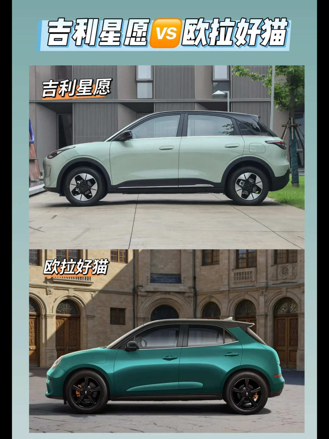 欧拉好猫和吉利星愿均为纯电小型车,前者主打复古设计与长续航,后者则以高性价比和空间实用。