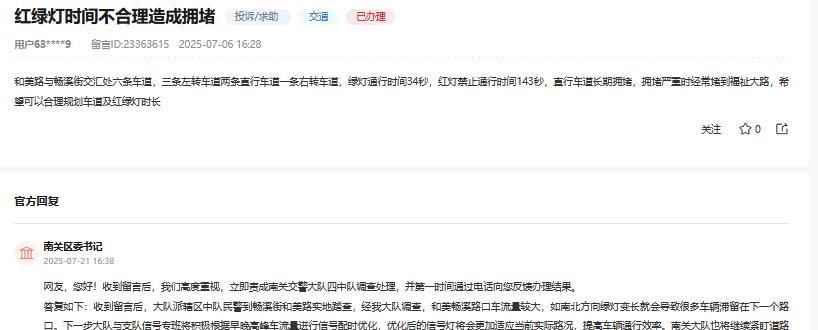 长春网友反映和美路与畅溪街交汇处红绿灯时间不合理造成拥堵,官方回复! 网友: 和