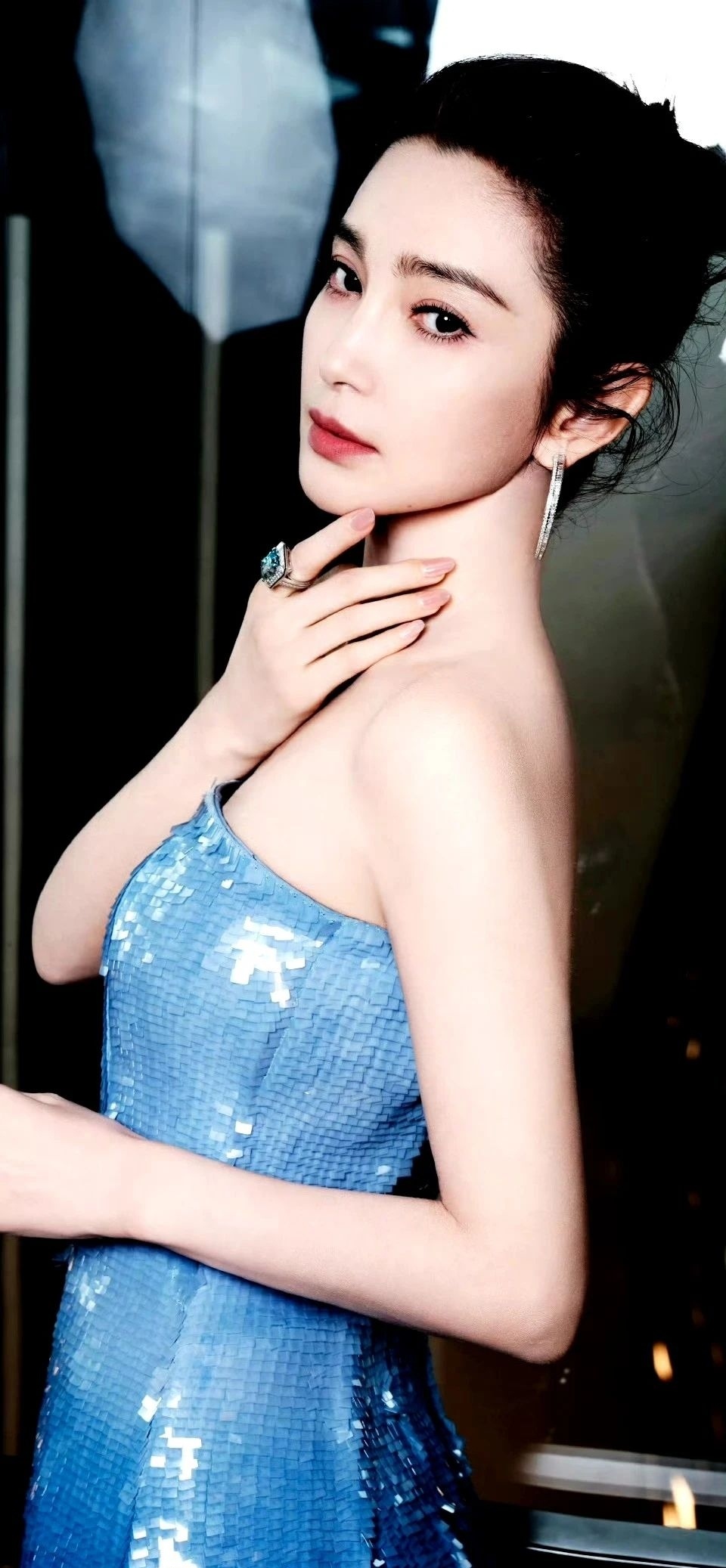 李冰冰蓝色渐变长裙气场拉满,优雅又高贵