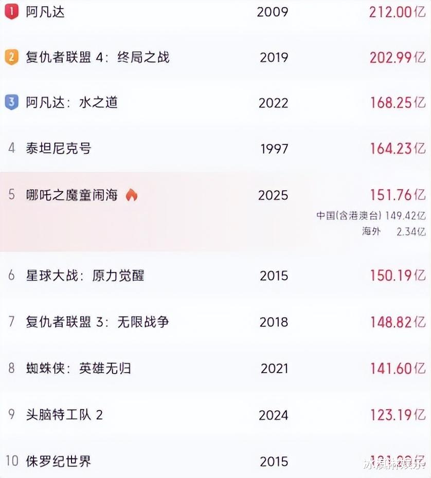 它以151亿的全球票房佳绩,力压《星球大战》等好莱坞大片,跻身全球影史票房前五,耀眼夺目。
