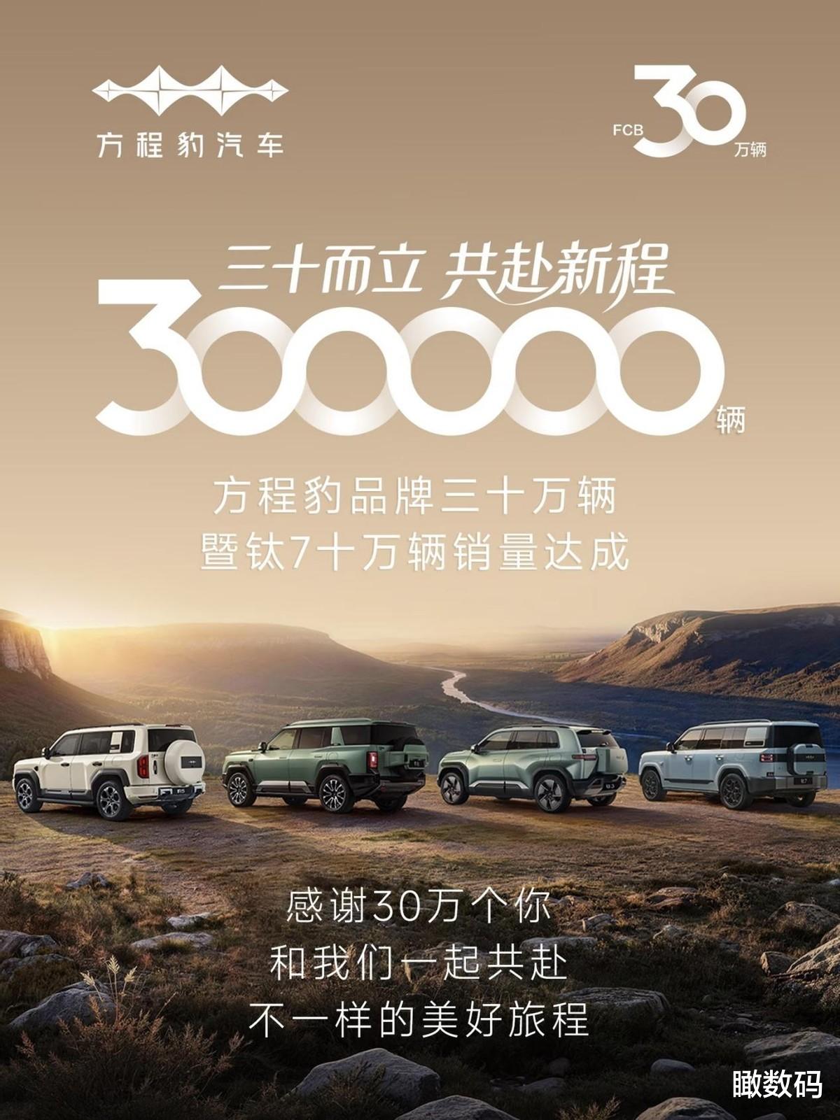 1月15日,方程豹汽车宣布品牌累计销量突破30万辆,不仅成为最快达成30万辆的新势力品牌TOP2、更是20-30万辆新势力品牌增速TOP1。