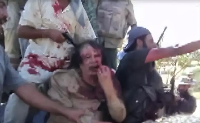 2011年卡扎菲被反对派从废弃的下水道中被脱了出来,反对派对他进行侮辱之后,便连开数枪将他毙命。