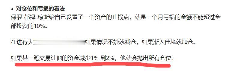 这句话是:如果某一笔交易,让他的总资金减少1%-2%,他就会抛出所有仓位。