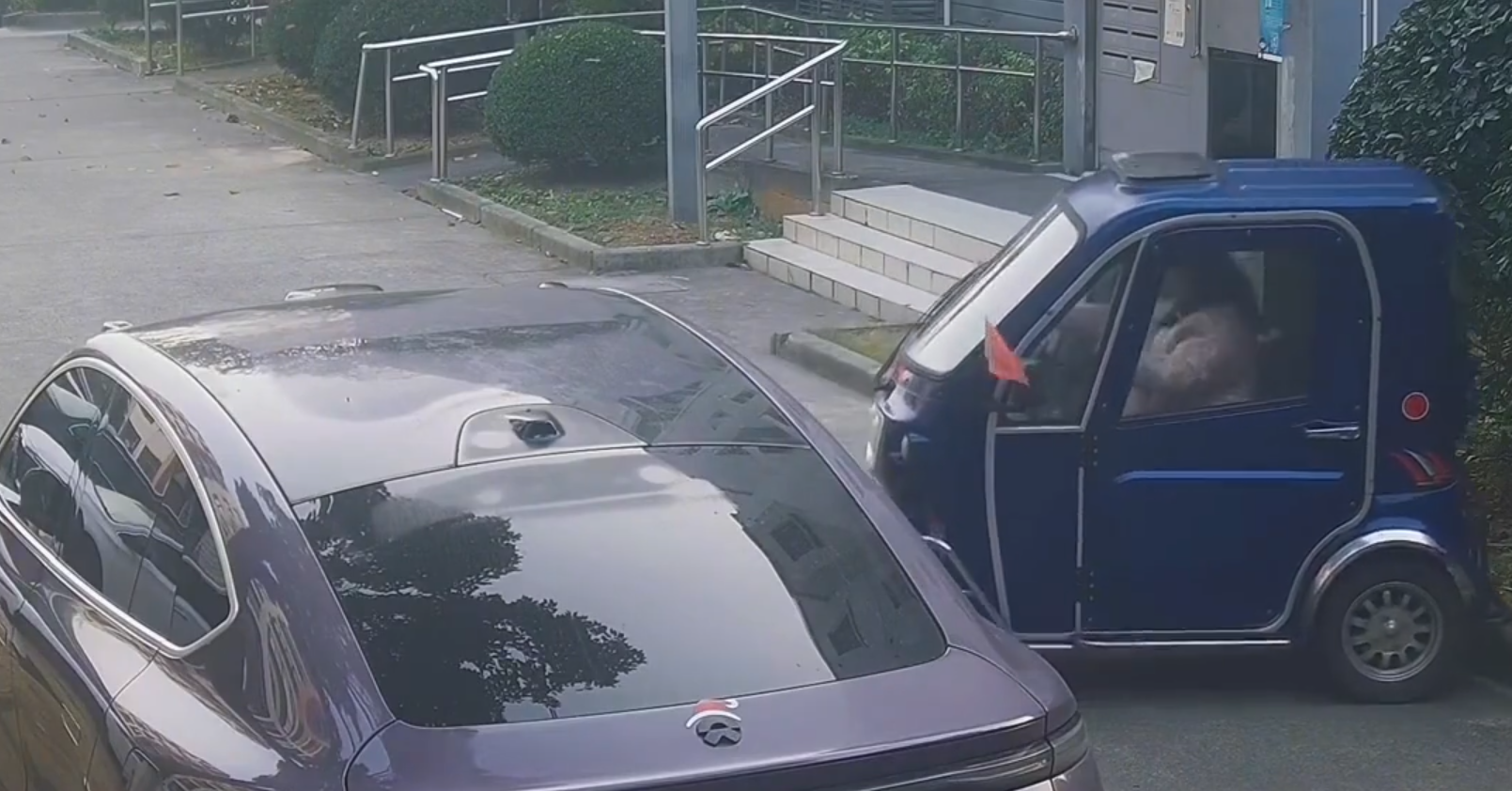 从网传信息和车主反馈来看,这起事件并非无心之失。当天,车主将车辆正常停放在小区路边,路面宽敞通畅,并未影响通行。没想到,一名拄着拐杖、步履艰难的残疾阿姨驾驶三轮车路过时,却突然朝着机动车撞去。一次撞击后,阿姨并未停手,反而接连两次再次猛撞,三次撞击下来,车辆多处受损。面对车主的质问,阿姨不仅毫无歉意,还理直气壮地宣称该区域是她的 “私有空间”,不允许他人停车。