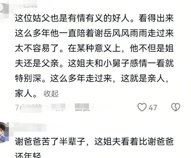 姐夫一直在背后默默支持谢岳。