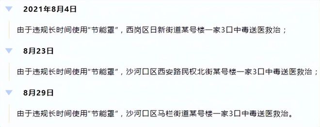 2021年8月,一个月时间里,辽宁大连相继发生3起人员中毒事故,原因均为违规长时间使用聚火罩。