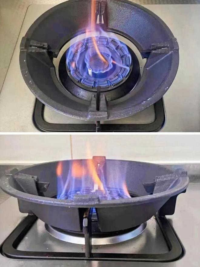 加装了聚火罩后,能做到聚集能量,让火苗不会四处扩散,这也导致原本是蓝色的火焰,变成红色了,火焰变红就说明天然气燃烧不充分。