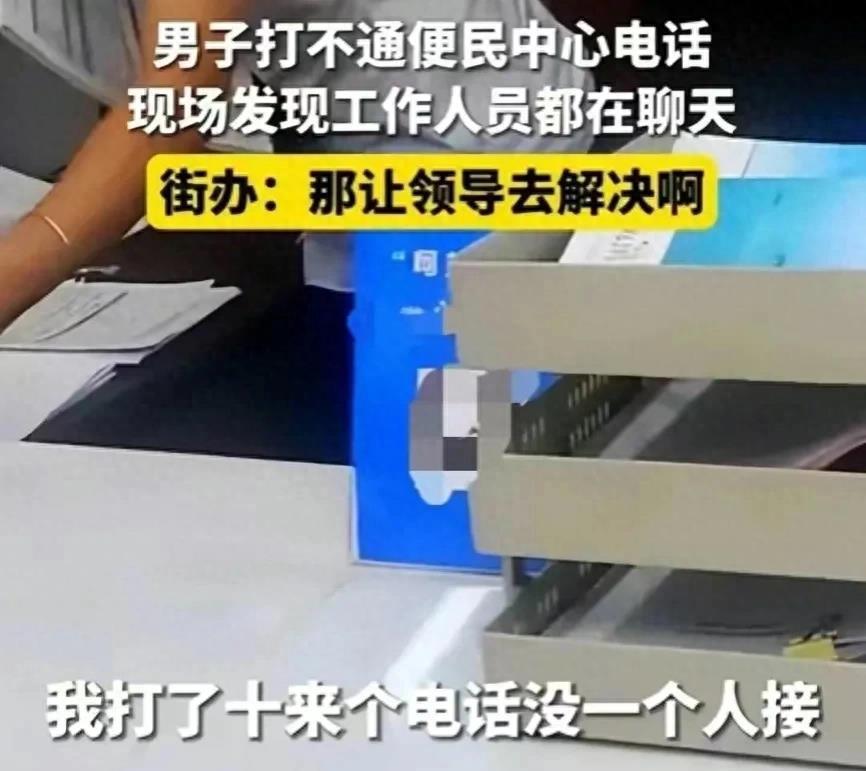 据悉,男子打便民热线有事,但是打了十几个都没有接,没办法,他只能到街道办去办理此事。可是,到之后的那一幕让他气不打一处来。