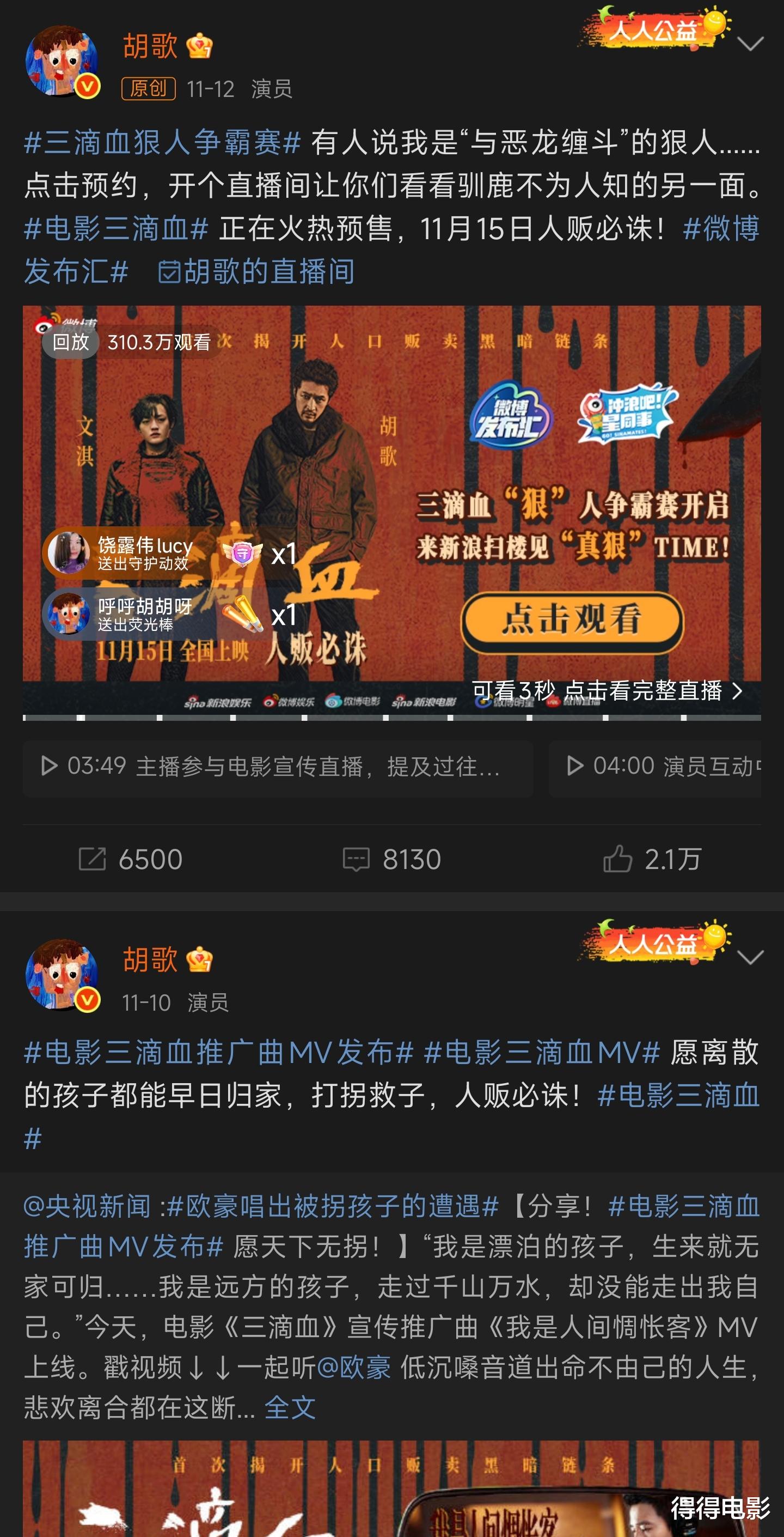 后来光是为了这部电影,胡歌光是在个人社媒上就发布了12条宣传,开启了疯狂刷屏模式。
