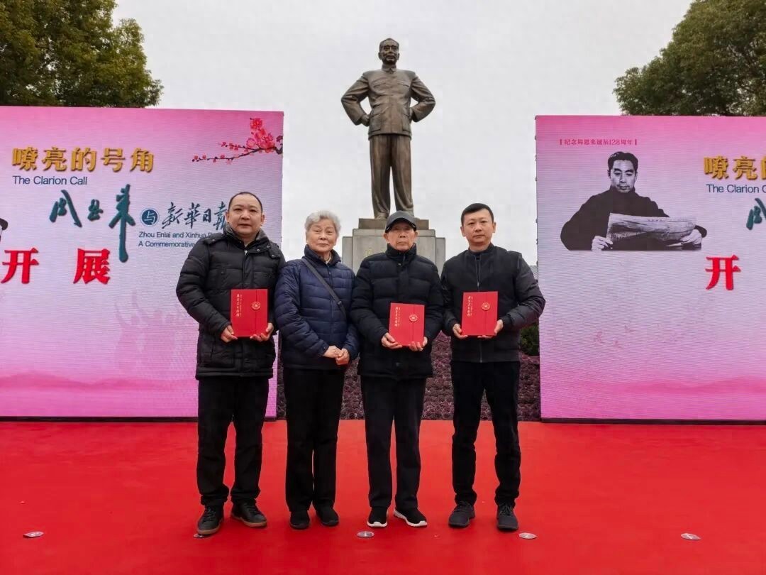 2026年3月5日,在周恩来总理诞辰128周年纪念日之际,周恩来总理侄子、原广州军区空军参谋长助理周秉钧,周秉钧夫人刘军鹰,周恩来总理侄孙周戎、周羽,中国萧军研究会副理事长、红色文化委员会副主任、东莞红色文化教育培训基地常务主任韩银山一行来到江苏淮安参加纪念周恩来总理诞辰128周年活动,并向周恩来纪念馆捐赠了周总理生前使用过的中山装胸章和穿过的一双袜子。