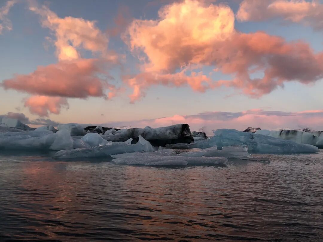 今天早起后的主题是远近闻名的杰古沙龙冰河湖,巨型冰块从瓦特纳冰川(Vatnajökull)的分支冰川上掉落,在宁静湖面上安详漂浮,最终进入大西洋,这番世界尽头般的静谧之景令人永生难忘。附近的钻石冰沙滩也十分夺目:冰块分陈于黑沙之上,是不可多得的摄影圣地。下午前往东部峡湾住宿。